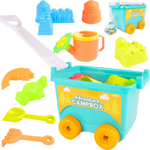 Practical blue sand cart with accessories is ideal for play at the playground and in the garden. Thanks to its lightweight construction and comfortable handle, children can easily pull it, and it also includes a watering can for watering and water play. A great choice for developing creativity and motor skills while playing in the sand.