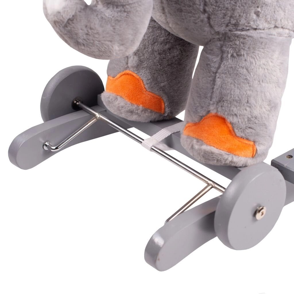 The adorable 2-in-1 plush elephant from PLAYTOrocking toy and a ride-on in one. Thanks to the simple slide-out wheel mechanism, you can easily switch from rocking to riding. An interactive ear with melody, super-soft material, and a comfortable seat with backrest ensure safe fun and help develop coordination.