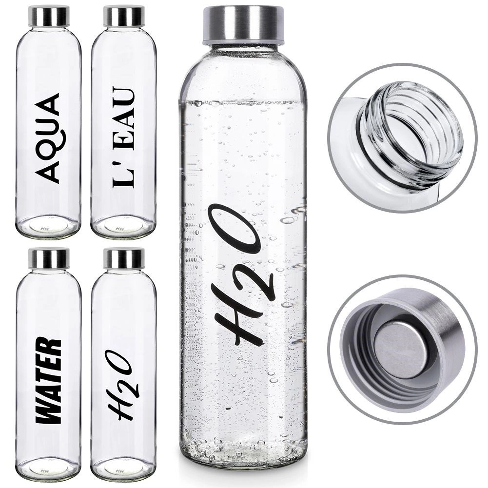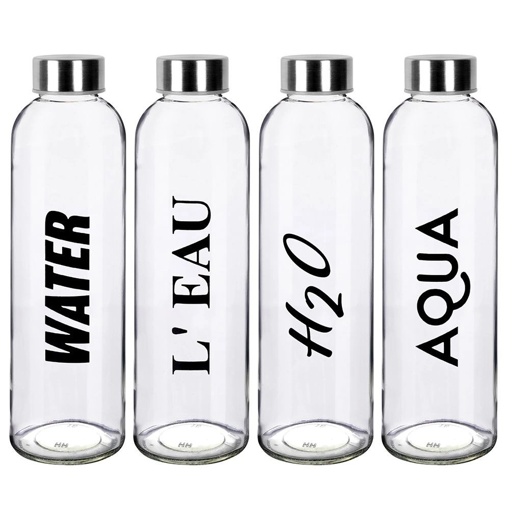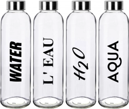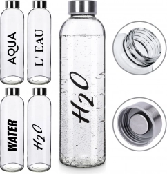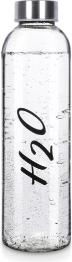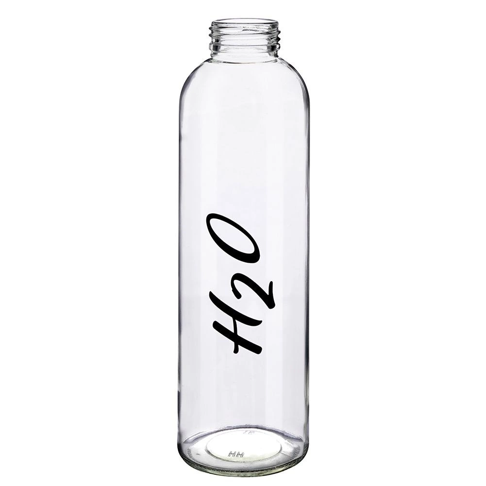 Elegant 700 ml glass bottle with a screw-on metal cap and silicone seal for a perfect leak-proof closure. Ideal for water, lemonade, juices, or smoothies. Durable clear glass with an eye-catching black print and a timeless design for everyday hydration at home, at work, and on the go.