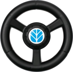 The three-spoke steering wheel with horn and engine sound encourages active play. Pivoting front wheels make maneuvering easy.