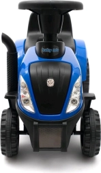 A stylish kids' ride-on tractor licensed by NEW HOLLAND delivers a stable and safe ride at home and in the garden. It features a detachable trailer with tools, a comfortable seat with a high backrest, pivoting front wheels, and sound effects (horn and engine sound). Thanks to its sturdy construction from high-quality plastic and metal wheel axles, it is ideal for children from 12 to 36 months, with a load capacity up to 25 kg.