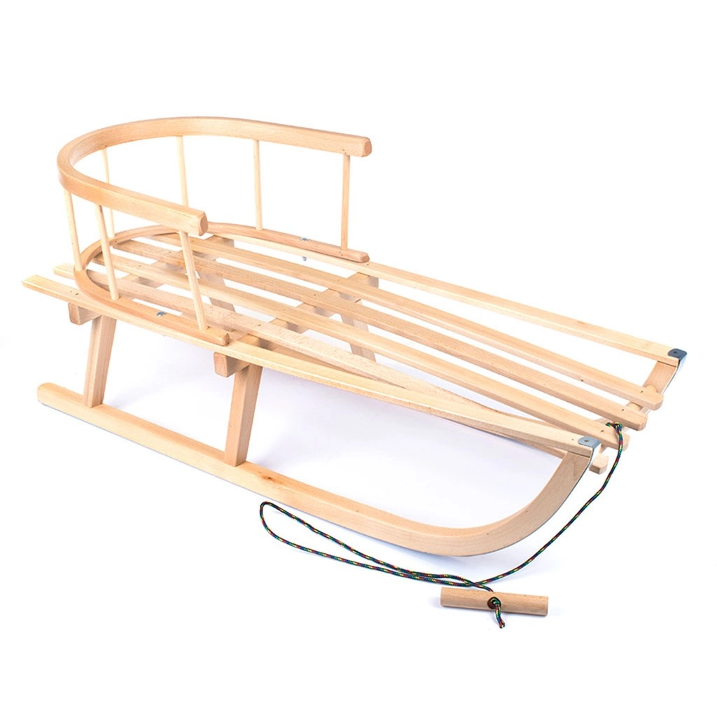 Enjoy winter to the fullest with solid beech-wood sleds. Thanks to robust workmanship, metal-reinforced runners, and a raised backrest, they are suitable for children who appreciate both security and comfort. The natural clear varnish is harmless to health and highlights the wood grain.