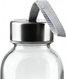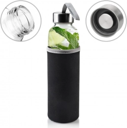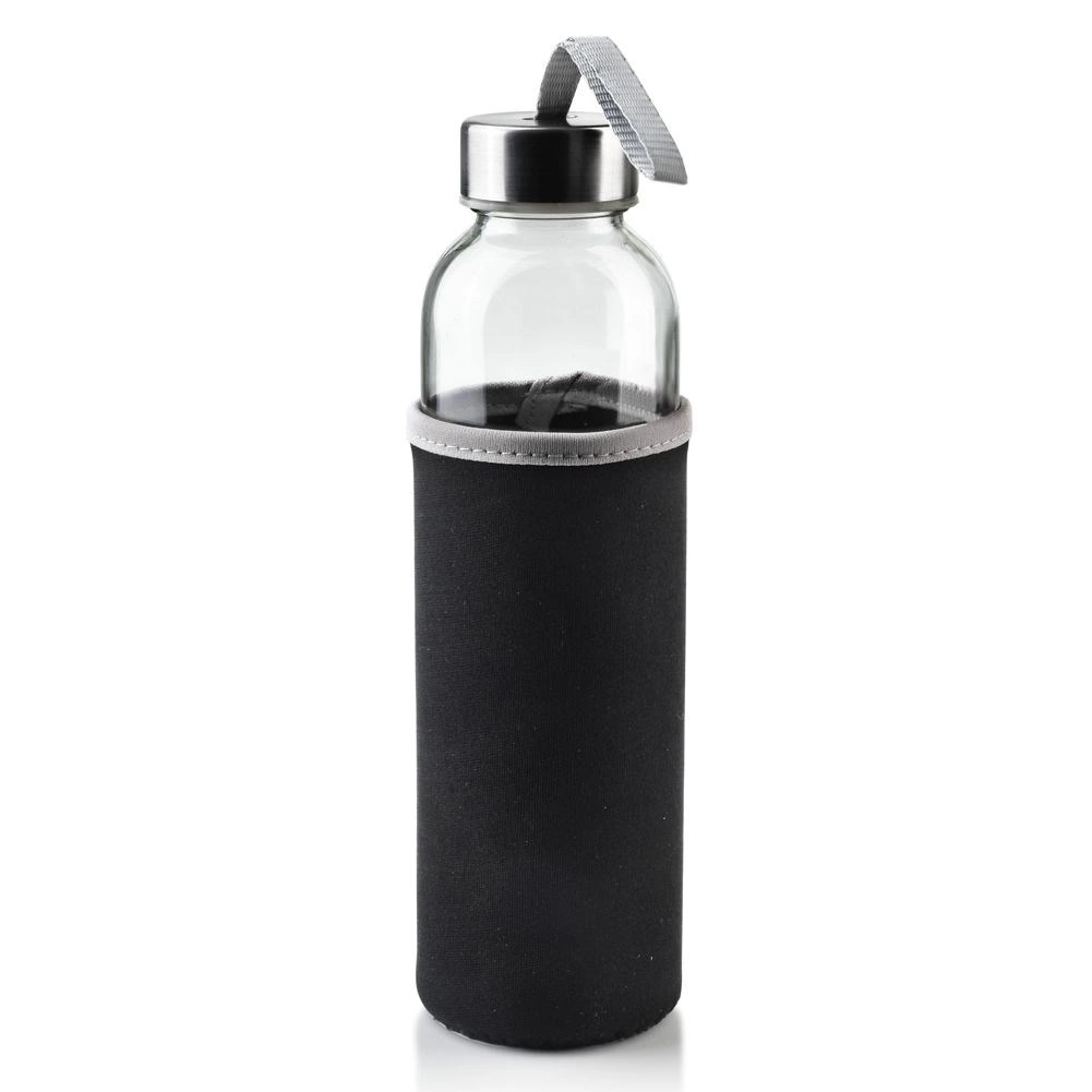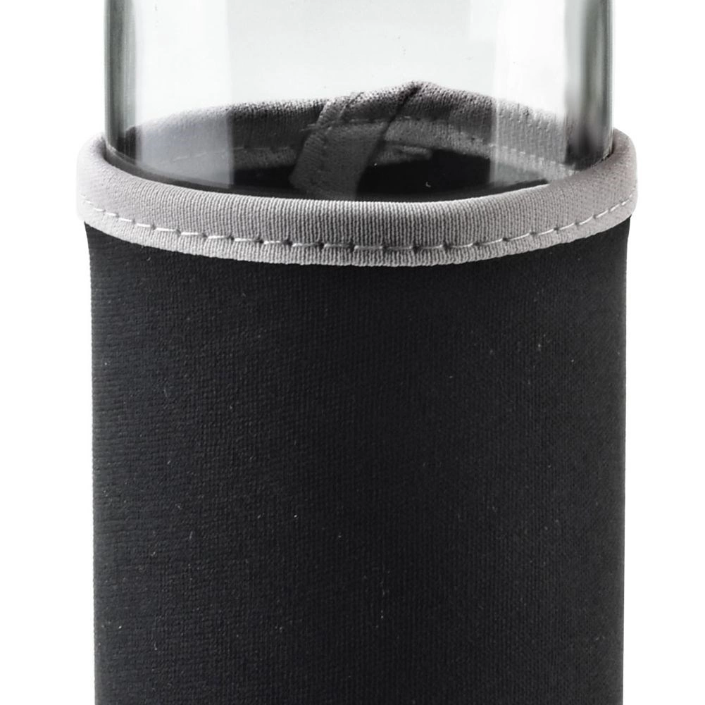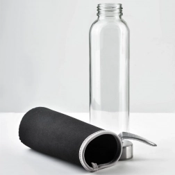 Stylish and durable, this 490 ml glass bottle combines clean design, safe materials, and practical details for convenient everyday use. The stainless steel screw cap with silicone sealing prevents leaks, while the removable neoprene sleeve enhances grip, insulation, and protects the bottle from impacts.