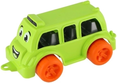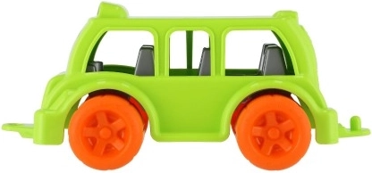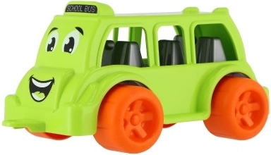 The model is made of durable, safe plastic and has rounded edges for comfortable, secure grip. The colorful finish (yellow, red, green) catches the eye at first glance and helps develop color recognition. Playing with the bus supports hand–eye coordination, fine motor skills, and social play.