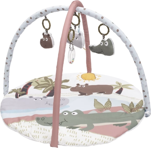 The super-soft Baby Mix Sahara Animals play mat offers your little one a safe and comfortable place to explore the world. The colorful pad develops shape perception, while removable plush toys and rattles support motor skills and curiosity. The soft material is ideal for lying on the back or tummy, and easy care makes everyday use simple.