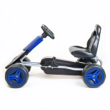 The BABY MIX Speedy pedal go-kart in blue is a great companion for little adventurers aged 3 to 8. It offers a stable frame, chain drive with forward/reverse, large plastic wheels with bearings, and an adjustable sport seat for a comfortable and safe ride.