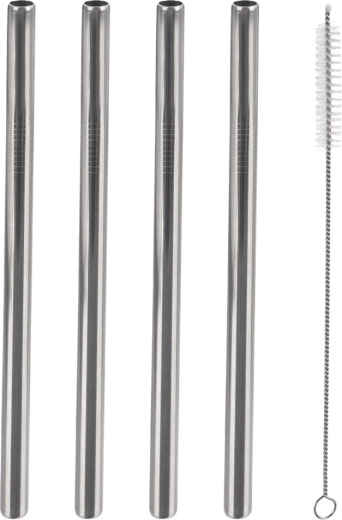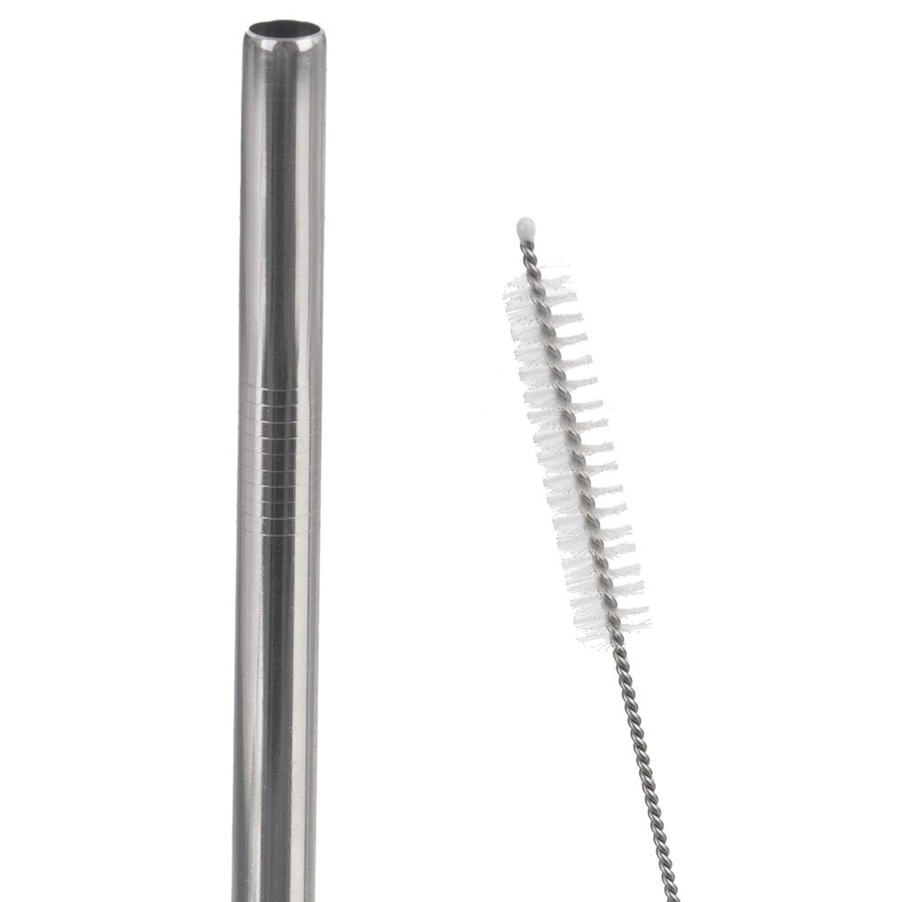 Enjoy your favorite drinks sustainably. Stainless steel straws in elegant silver do not affect drink taste, look great in glassware, and are suitable for water, smoothies, cocktails, lemonade, coffee, and iced tea. The set includes a slim cleaning brush for perfect hygiene.