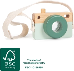 Made from 100% FSC-certified wood with smooth finishing for safe play. The front features printed clock graphics with movable hands for playful time learning. The toy naturally supports fine motor skills, coordination, visual and auditory perception, and nurtures imagination.
