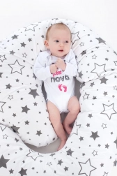 The universal New Baby C-shaped nursing pillow offers moms and babies maximum comfort during breastfeeding and rest. It provides ergonomic support for the back, belly, and arms, relieves tension, and helps prevent back pain. Thanks to its soft filling and cotton cover, it is pleasant to the touch and stable in use. The removable zip cover makes maintenance easy.
