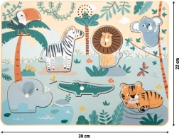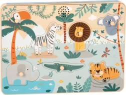 Discover fun sound learning with the Small Foot Safari wooden puzzle. Children recognize shapes and animals, and when a piece is lifted they are greeted by a realistic sound. The colorful design, 7 animals, and high-quality FSC® wood develop motor skills, logic, and perception. Runs on 2× AAA batteries (not included).