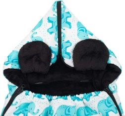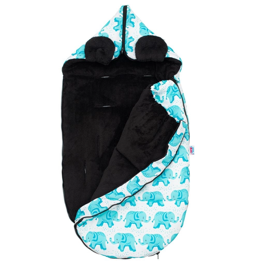 The practical NEW BABY winter footmuff with an elephant pattern provides your baby with warmth, comfort, and safety in both stroller and car seat. It has openings for 5-point harnesses, a full-length zipper for easy insertion, and a tapered hood for maximum comfort. The inner warm fleece and anti-allergic filling keep your child cozy even in freezing weather.