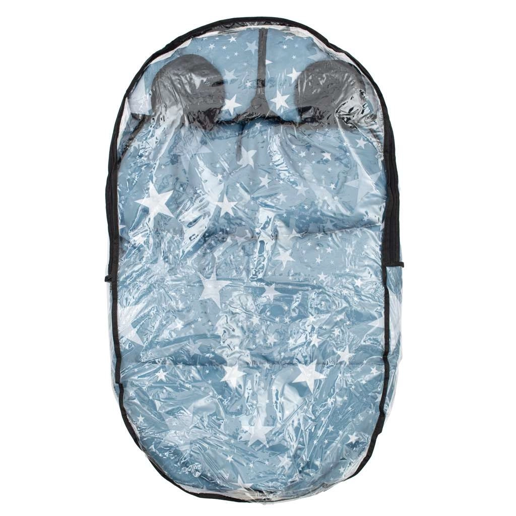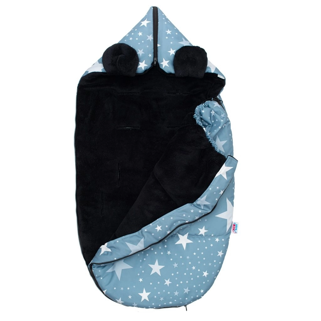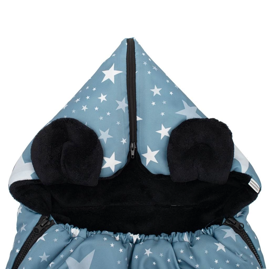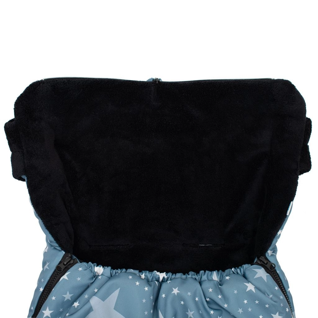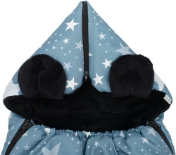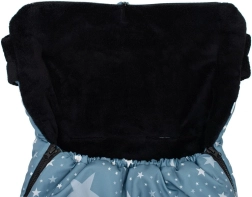 Practical New Baby winter footmuff with a star pattern ensures your baby warmth, comfort, and safety in both stroller and car seat. It has openings for 5-point harnesses, a zipper around the entire perimeter, and a tapered top section into a hood for maximum comfort. Thanks to the high-quality fleece inner layer and anti-allergic filling, it is ideal for cold days.