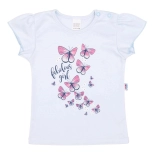 Adorable 2-piece set for girls NEW BABY BUTTERFLIES combines a comfortable short-sleeve T-shirt with a dark blue ruffled skirt. Soft 100% cotton for the T-shirt and an elastic waistband on the skirt ensure maximum comfort and easy dressing thanks to the snap buttons on the shoulder. Ideal for everyday wear and special occasions.