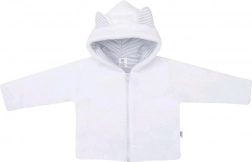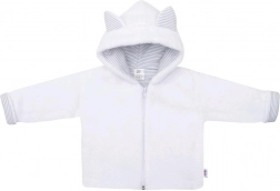 A cute and cozy winter coat with a hood for babies from the NEW BABY Snowy series provides perfect comfort and warmth in the cold season. It is made of ultra-soft Wellsoft material, is insulated with anti-allergenic fiber, and has a cotton lining with modern stripes. The full-length zipper makes dressing easy, and the turn-up sleeves show off the stylish stripes.