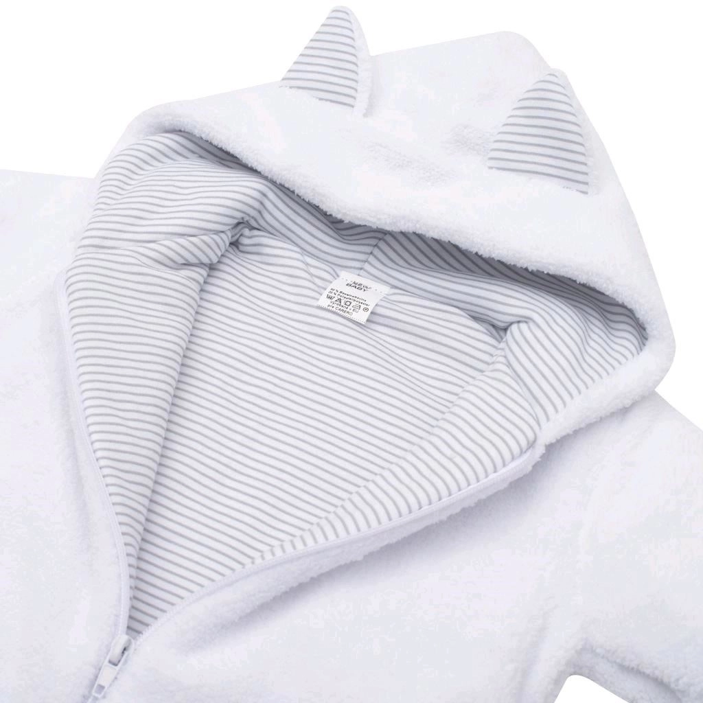 The adorable hood with ears protects against the cold, and the striped 100% cotton lining is gentle on your baby’s sensitive skin.