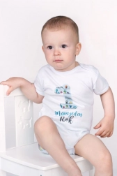 Practical snap fastening on the shoulder and between the legs makes dressing and changing easier. Thanks to the comfortable cut, the bodysuit is ideal for everyday wear, photos, and birthday celebrations.