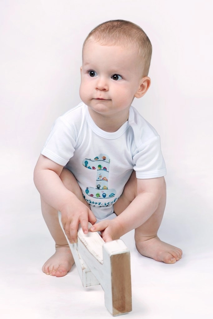 Adorable long-sleeve cotton bodysuit by New Baby to celebrate a first birthday. Comfortable cut, certified baby-safe print and practical snap fastening on the shoulder and between the legs for easy dressing and changing. 100% cotton ensures softness and comfortable wear.