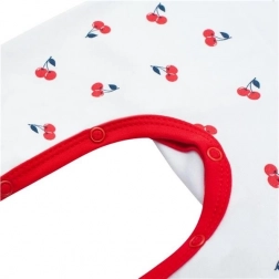 The NEW BABY Cherry romper made of pleasant 100% cotton is a great choice for sensitive baby skin. The top features a cute cherry patch that is backed so it won’t irritate. The bottom part has an all-over cherry print, and the contrasting trim around the neckline and straps adds a stylish touch.