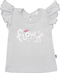 Adorable two-piece New Baby Happy Flower set in grey, made from soft 100% cotton. The set includes a top with ruffled sleeves and joggers with a wider waistband for maximum comfort. The top features the Happy Flower print, while the pants have an all-over floral print and tapered, cuffed legs.