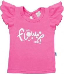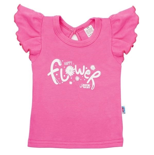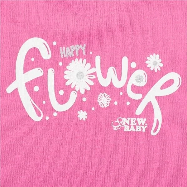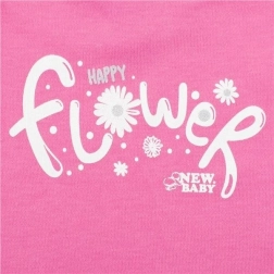Cute two-piece baby set New Baby Happy Flower in dark pink delights with comfort and style. It includes a T-shirt with the inscription Happy Flower and ruffled sleeves, and comfy pants with a floral print. Thanks to the snap at the neck, it’s easy to put on. Made from 100% cotton for delicate baby skin.