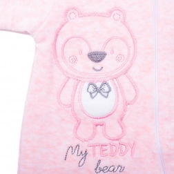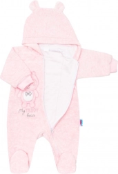 The New Baby Sweetheart suede hooded jumpsuit in a delicate pink shade is ideal for cooler days and cozy time at home. The adorable teddy print delights both parents and babies, and the fully lined design increases wearing comfort.