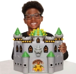 Relive iconic moments from SUPER MARIO in the richly detailed Bowser’s Castle play environment. The two-level structure in gray tones with green roofs and signature “stud” details delivers an authentic atmosphere. At the entrance, you’re greeted by Bowser’s head, one of the towers activates music from the game, and the interior comes to life with a moving elevator, a latch, and a drop-down cage.