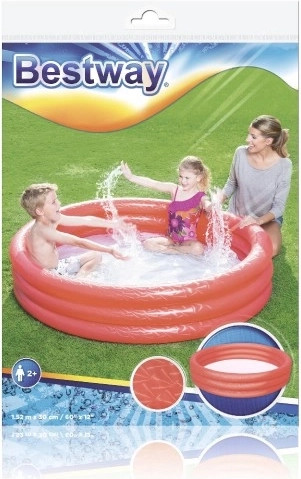 The inflatable pool from brand Bestway is made from durable vinyl material and features three identical inflatable rings for stability and comfort. With a capacity of 282 liters (74 gallons), it is spacious enough for children's activities in the backyard.