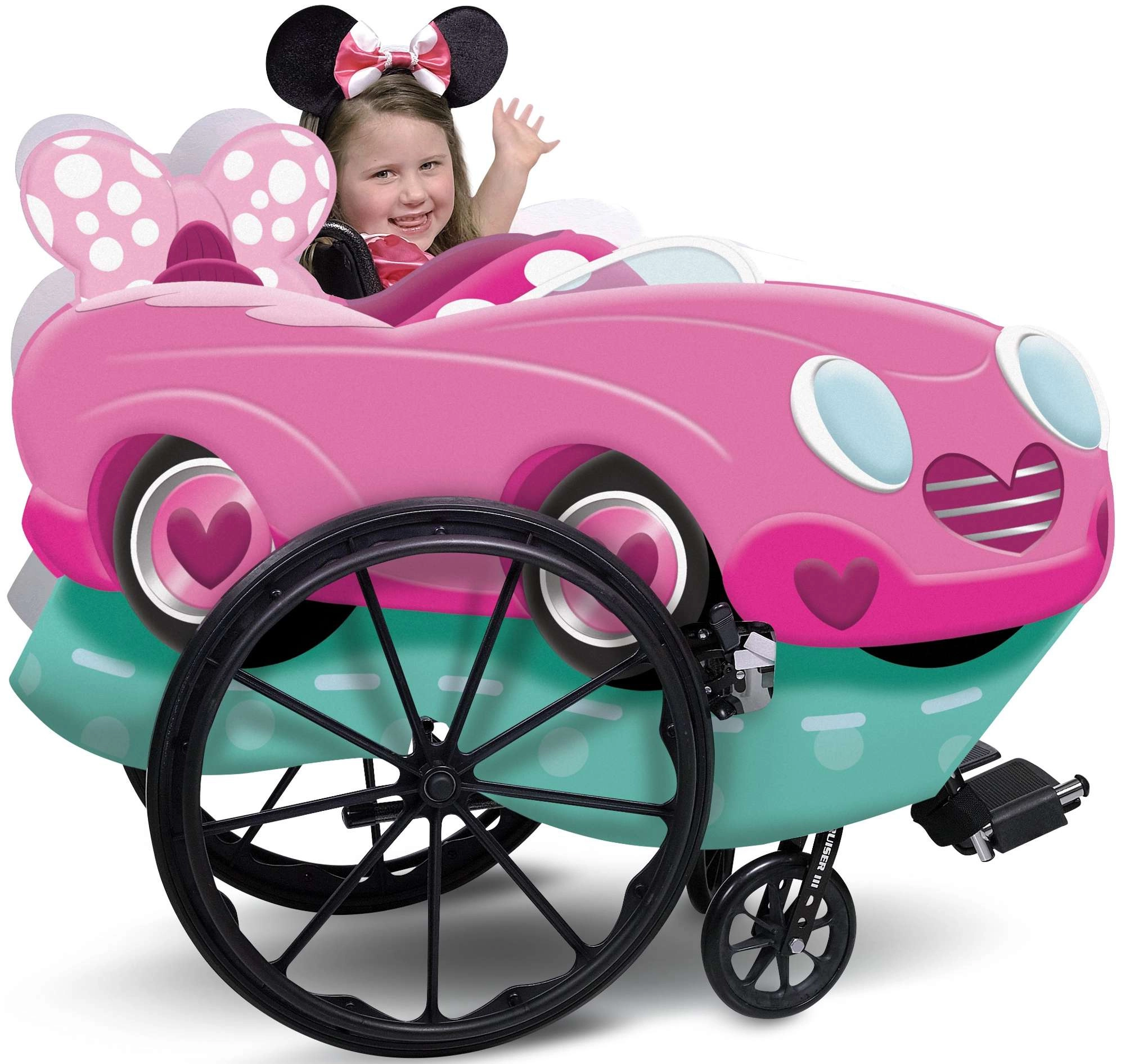 A cute vehicle costume featuring MINNIE for a child’s wheelchair turns every ride into magical fun. An original licensed DISNEY product by Disguise, made from soft felt, easy to put on, and suitable for wheelchairs with 24" (61 cm) wheels. Ideal for carnivals, costume balls, and imaginative play at home.