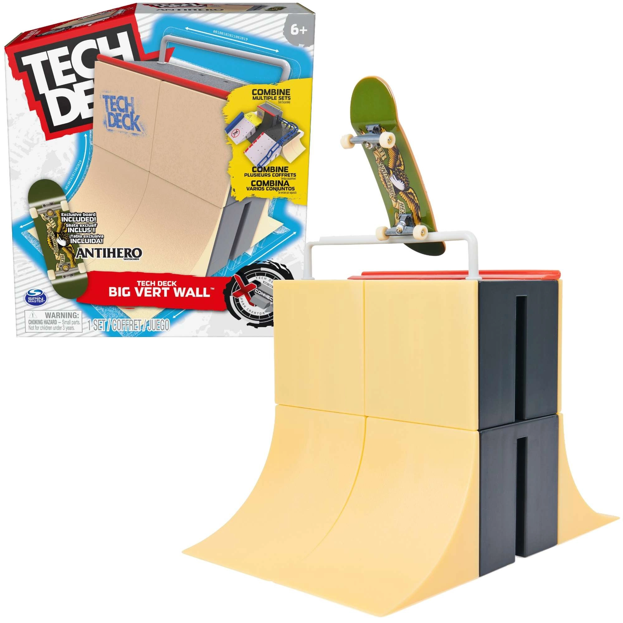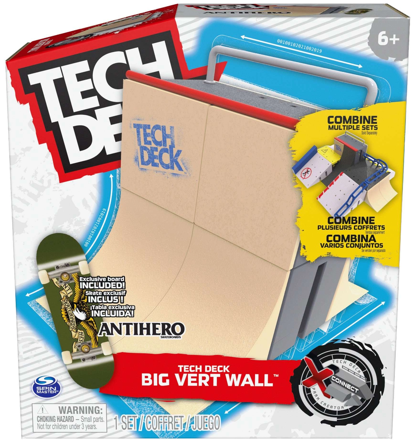 Experience realistic fingerboarding tricks with the Big Vert Wall ramp from the X-Connect series and the original TECH DECK Antihero fingerboard. The connectable ramp system lets you build your own park, practice grinds, jumps, and flip tricks, and keep pushing your skills. Ideal for beginners and advanced fingerboarding fans alike.