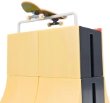• Realistic riding – tall ramp with rail for grinds and air styles.