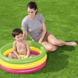 On hot summer days, there’s no better refreshment for your little ones than an inflatable pool! This pool is suitable as a paddling pool. A colorful three-chamber inflatable pool that’s perfect for the garden and sure to bring children lots of joy. The softened PVC floor prevents abrasions and provides a non-slip surface.