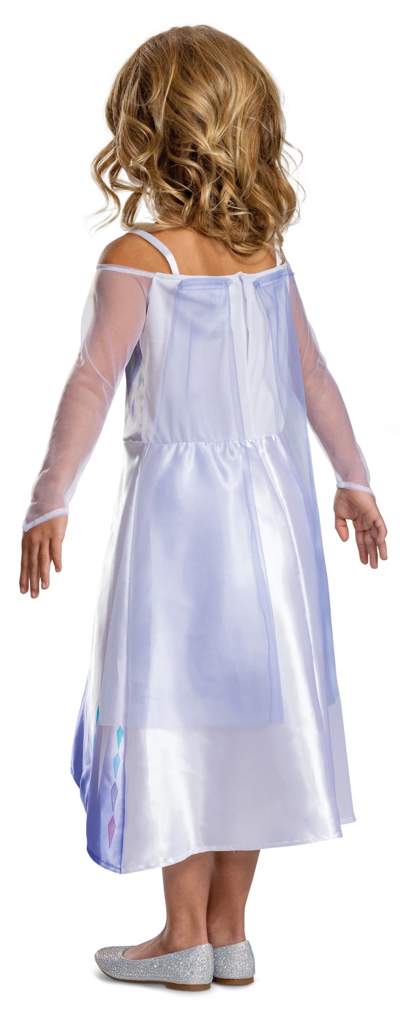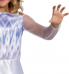 The bodice features geometric “icy” motifs and a delicate sparkle that gives the costume the authentic look of the beloved character from Frozen.