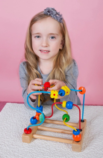 The ladybug maze by Bino is an ideal first motor skills toy. Colorful beads shaped like animals and flowers move along metal wires above a wooden base, encouraging patience, concentration, and playfully developing toddlers’ abilities.