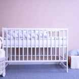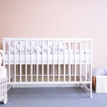 The New Baby LILLY baby cot is made from high-quality FSC-certified pine wood and treated with an eco-friendly water-based varnish that is safe for children and the environment. The ventilated slatted base promotes air circulation and moisture wicking, helping to maintain mattress properties.