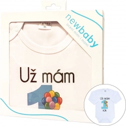 Stylish cotton long-sleeve bodysuit from New Baby makes an original first-birthday gift. It features a fun print “I’m already 1 year old” with balloons, is made of 100% cotton, and offers convenient snap fastening at the shoulder and between the legs for easy dressing and diaper changes. The certified print colors are safe for babies.