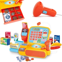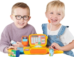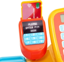 Discover fun cashier play with the CASDON kids' cash register in energetic colors. Children can scan items, total purchases on the calculator with an easy-to-read keypad, pay by card or cash, and communicate through the working microphone. Realistic sound effects when scanning and inserting the card boost imagination and support learning numbers and basic financial literacy.