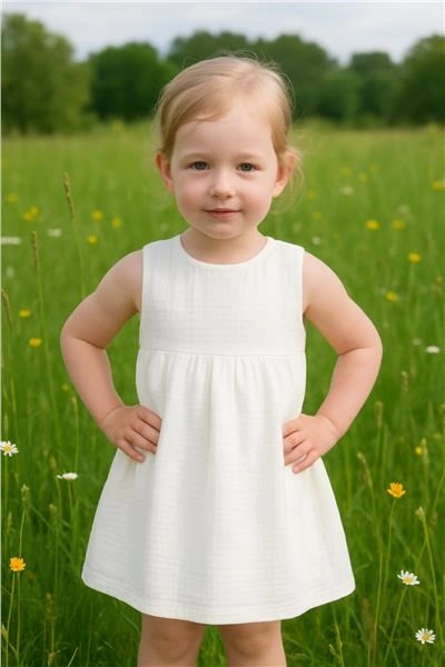 The New Baby Elizabeth dress is designed for maximum comfort and style on warm days. Muslin is among the softest and most breathable fabrics—it breathes well, reduces the risk of overheating, and is exceptionally pleasant to the touch. Thanks to the A-line cut, the dress flows beautifully and does not restrict movement.