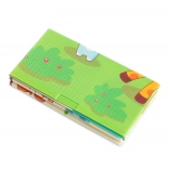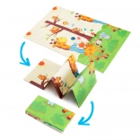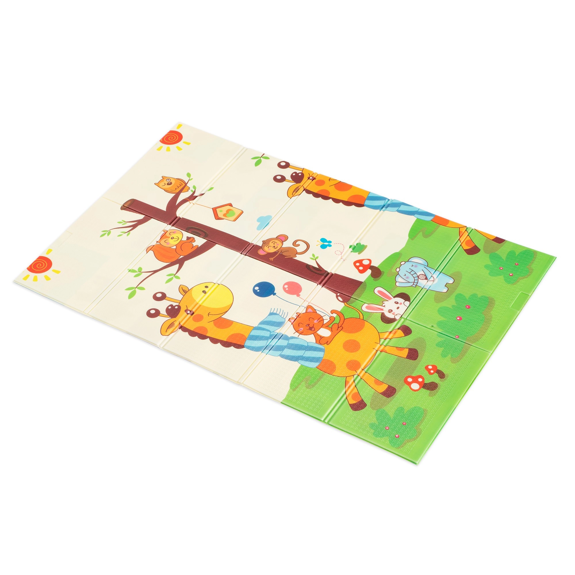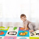 Premium XPE foam is odorless, non-toxic, and resistant to wear. Thanks to its 0.8 cm thickness, it provides excellent shock absorption and insulation from cold floors. Both sides feature attractive prints – one with cute giraffes, the other with animals on a colorful background – supporting children’s visual development.
