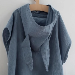 The lightweight and absorbent New Baby Feeling children’s muslin poncho in blue is ideal after a bath, for the pool, and for the beach. Thanks to the muslin material, it is breathable, quick-drying, and gentle on children’s skin. A practical hood with cute ears and side snaps for easy dressing ensure comfort and year-round joy of wearing.