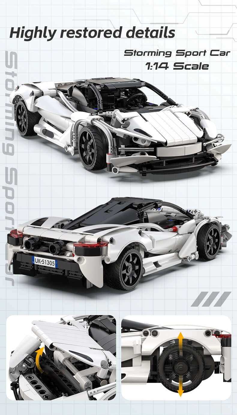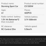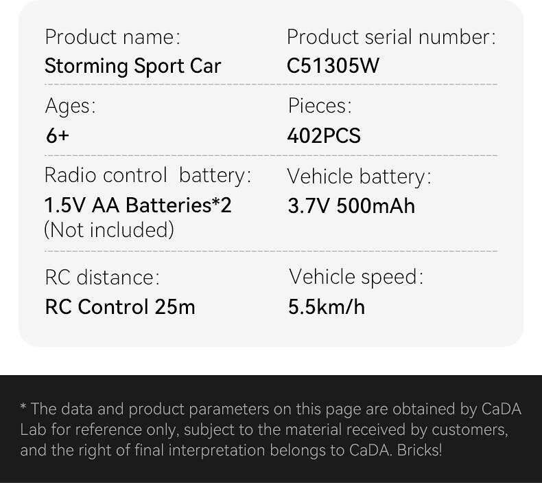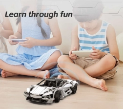 The CaDA sports car stands out with realistic proportions, a sturdy build, and an attractive white body with black details. Thanks to the drivetrain and precise steering, you’ll enjoy smooth forward and reverse driving and accurate cornering. Dual Mode lets you control the model with a classic controller or a Bluetooth-enabled smartphone – fun indoors and outdoors.