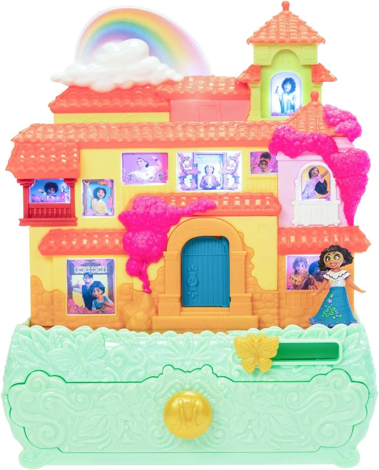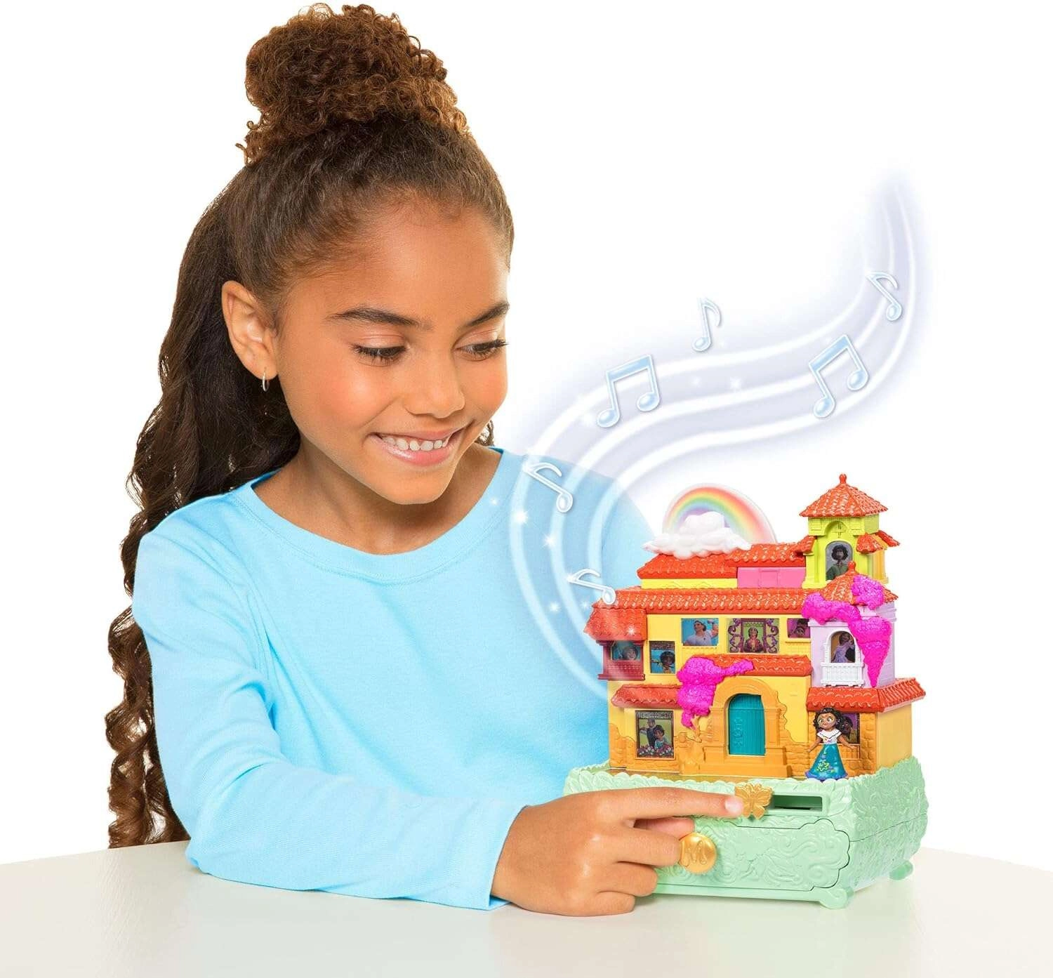 Glowing windows, opening doors, and a dancing Mirabel bring an ENCANTO scene to life. Just slide the butterfly and the house will play favorite melodies.