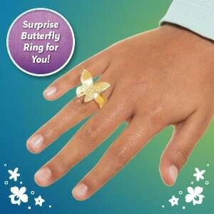 Store bracelets, rings, and little secrets in the handy base drawer. The set also includes a magical butterfly ring.