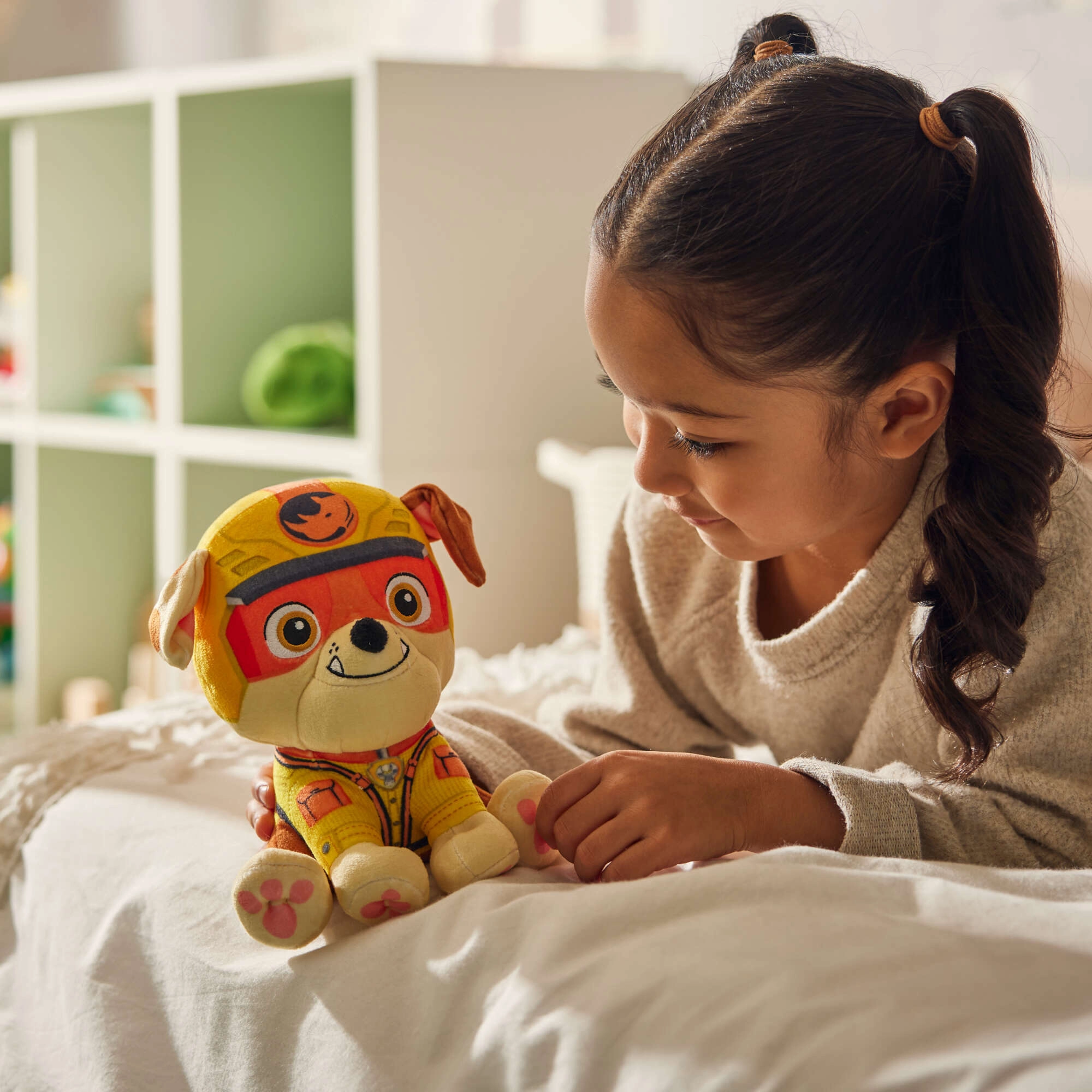 Adorable plush pup Rubble from the PAW PATROL Jungle Pups series will delight every little fan. He is soft and cuddly, perfect for snuggling and imaginative play. In his signature yellow builder gear, he is ready for any adventure. Size approx. 18 cm, ideal for small hands.