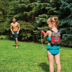 This kids’ water backpack inspired by the beloved PAW Patrol series brings hours of refreshing fun. The sturdy red-and-gray tank with the show’s logo is comfortable to wear thanks to adjustable shoulder straps. Simply fill with water, attach the hose, and use the hand pump to launch a powerful stream.