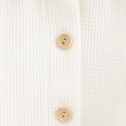 The neutral white color and wooden buttons give the cardigan a timeless look that is easy to match with the rest of the layette. Suitable for home, walks, and festive moments—and thanks to its look, it easily replaces a classic sweater.