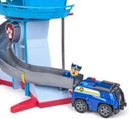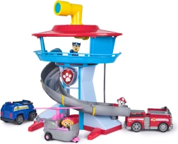 Experience show-style action with the PAW Patrol playset – an impressive 43 cm lookout tower with a fast descent ramp and interactive effects. The box includes 3 figures (Chase, Marshall, Skye) and their vehicles for instant missions. Light and sound effects, a lift to the top of the tower, and a spiral ramp turn every day into a rescue adventure.