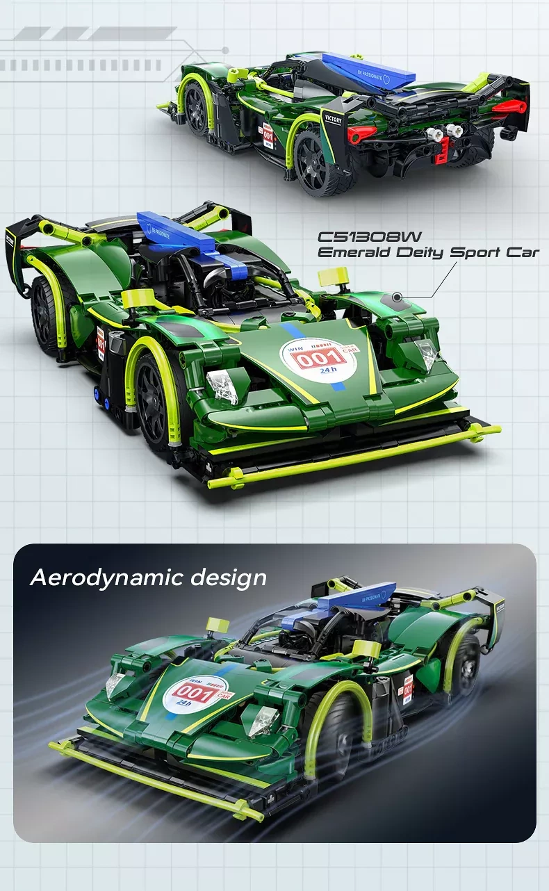 The PHANTOM WING sports car in iconic green delights with its detailed design and smooth ride. Thanks to dual-mode control, you can choose between a classic 2.4 GHz controller and a mobile app (Android/iOS) with multiple driving modes. Piece compatibility with other building kits ensures endless expansion options.