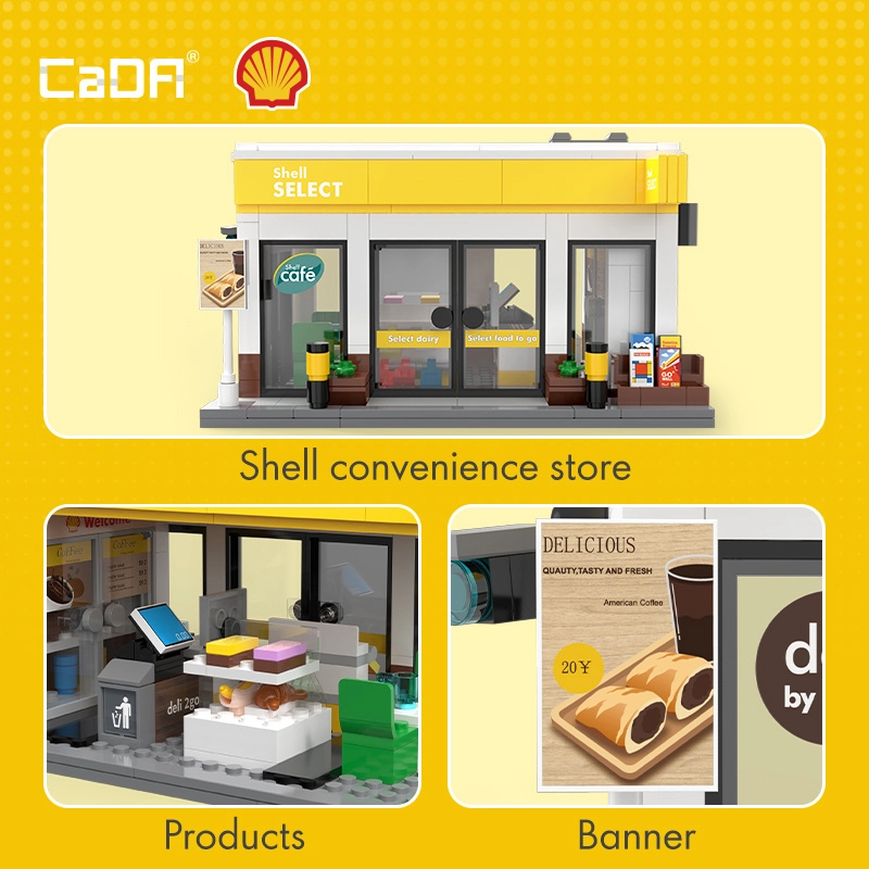 The CaDA building set brings a detailed single-story mini SHELL store with realistic elements such as sliding/opening doors, display cases, posters, and interior equipment. Ideal for kids aged 8+ and adult brick fans who love precision and a stylish display model.