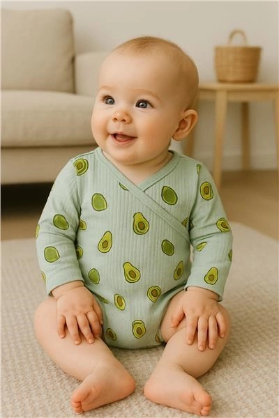 The NEW BABY Avocado wrap-style muslin bodysuit is ideal for everyday wear – the finely woven, breathable fabric naturally “breathes” and helps regulate temperature, reducing the risk of overheating. The all-over avocado print adds a cheerful look, and the high-quality 100% cotton muslin will win over both kids and parents.