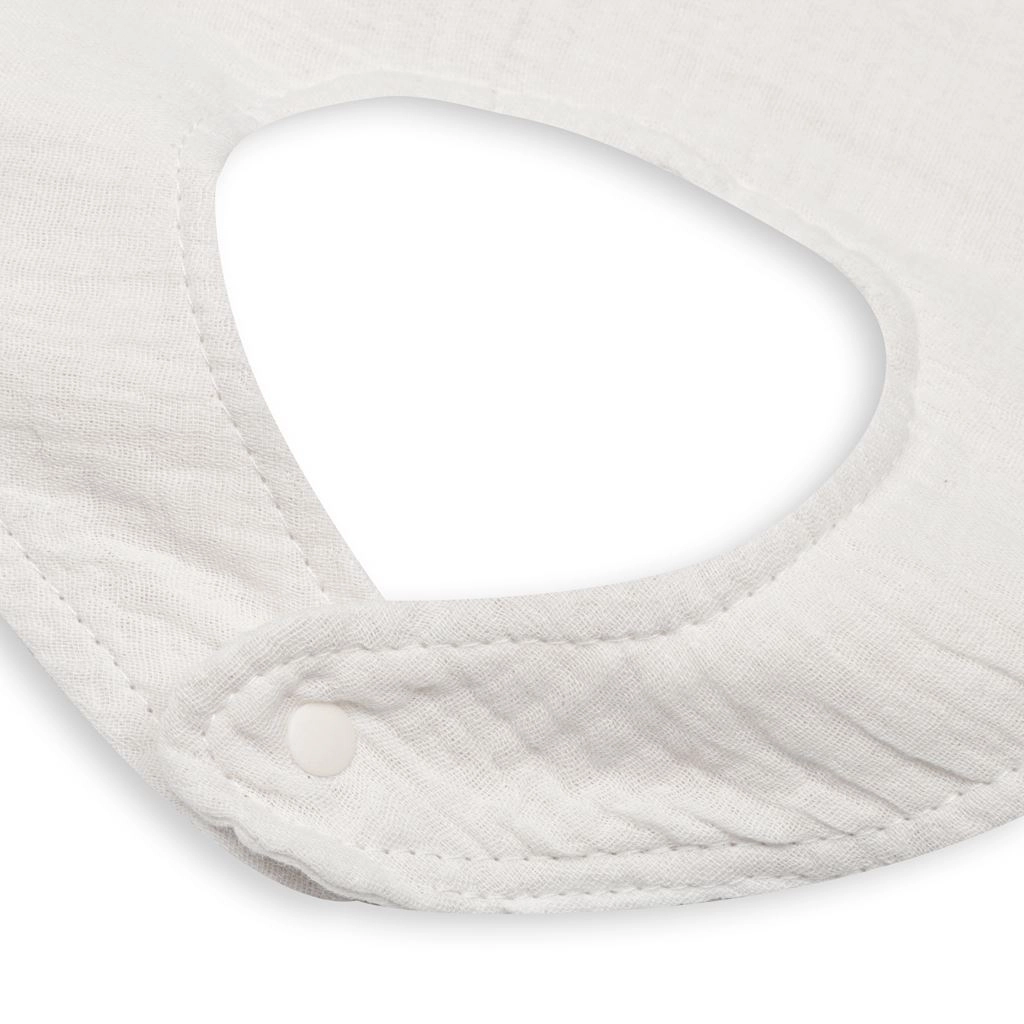 A practical and stylish helper for everyday use. Muslin absorbs well, dries quickly, and is gentle on delicate baby skin. The white bib is easy to match with the layette and helps create a beautiful set suitable as a gift for a newborn.